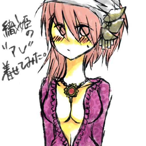 こう、襟の四角いTシャツの右と左をぐいってやって肩だして伸ばしてーみたいな・・・(超適当)