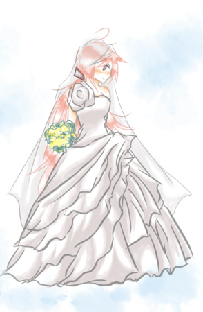 ジューンブライドなのに花嫁さんかいてなかった!!というわけでデロさまに急遽ウエディングしてもらいました。ブーケは・・・・・・・・・唯が受け取るんじゃないか な!(てきとう)披露宴とか盛大に、仲間内でぎゃーぎゃーさわいでほしいです。絵チャするたびに暮デロはシリアスになっていくので・・・強姦とか・・・以下略。せめて妄想だけでもしあわせに!ラブラブに!